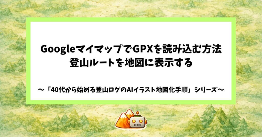 保存したGPXファイルをGoogleマイマップに読み込ませると、移動ルートが地図上に表示されます。今回はその具体的な手順を紹介します。特別な知識は必要ありません。ファイルを読み込ませるだけで、登山の軌跡が可視化されます。 このシリーズについて 初め... 生成AI活用法